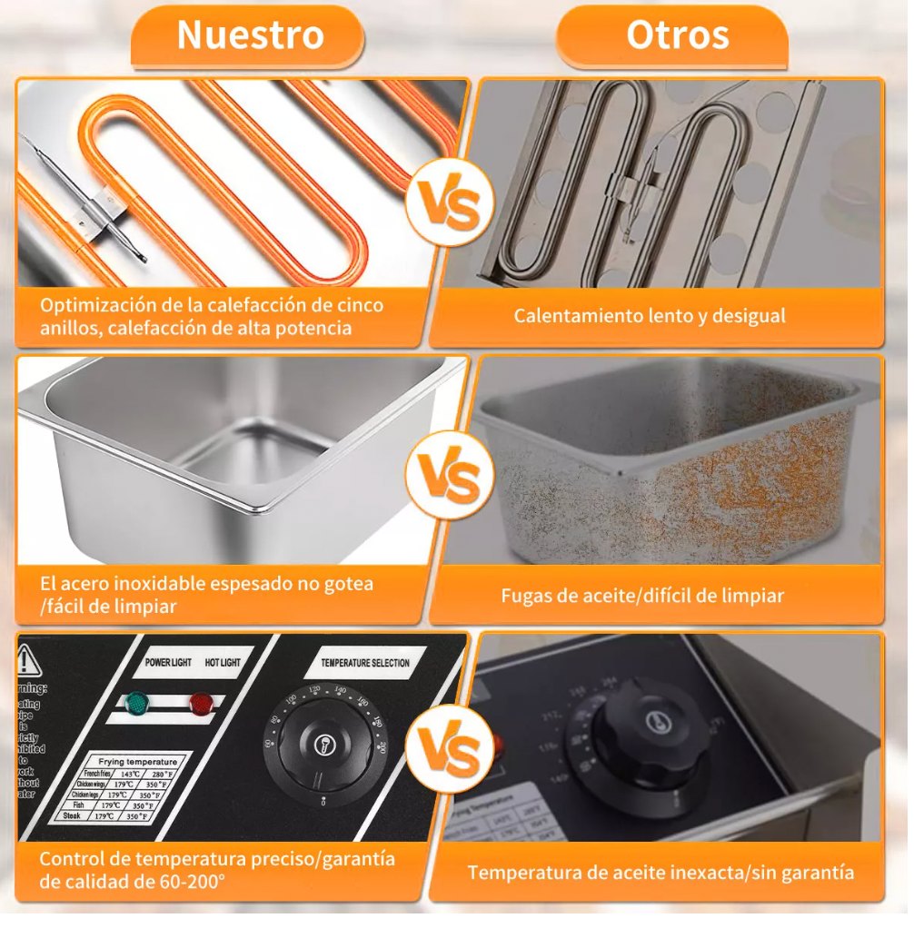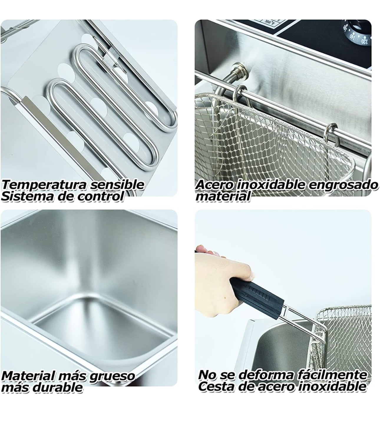 ✅ Capacidad de 12 litros: Perfecta para freír papas, pollo, pescado, churros y más.