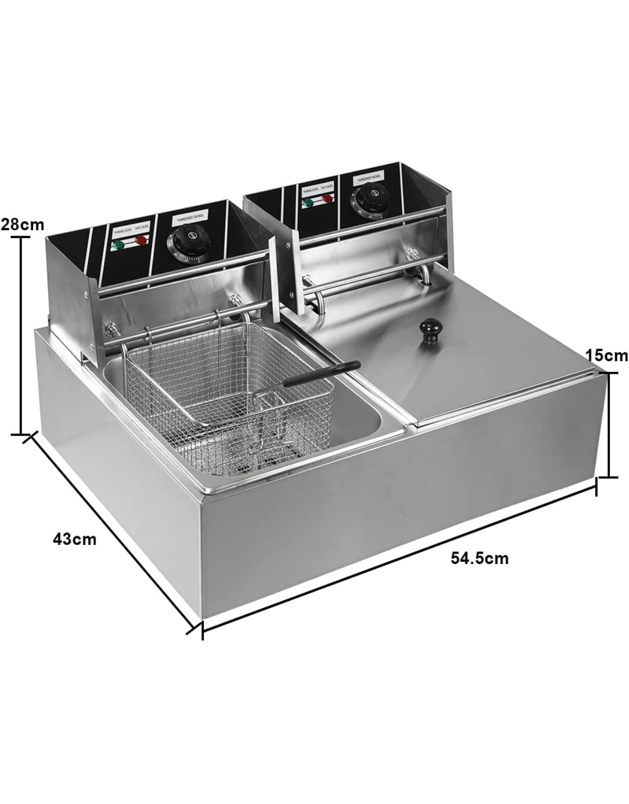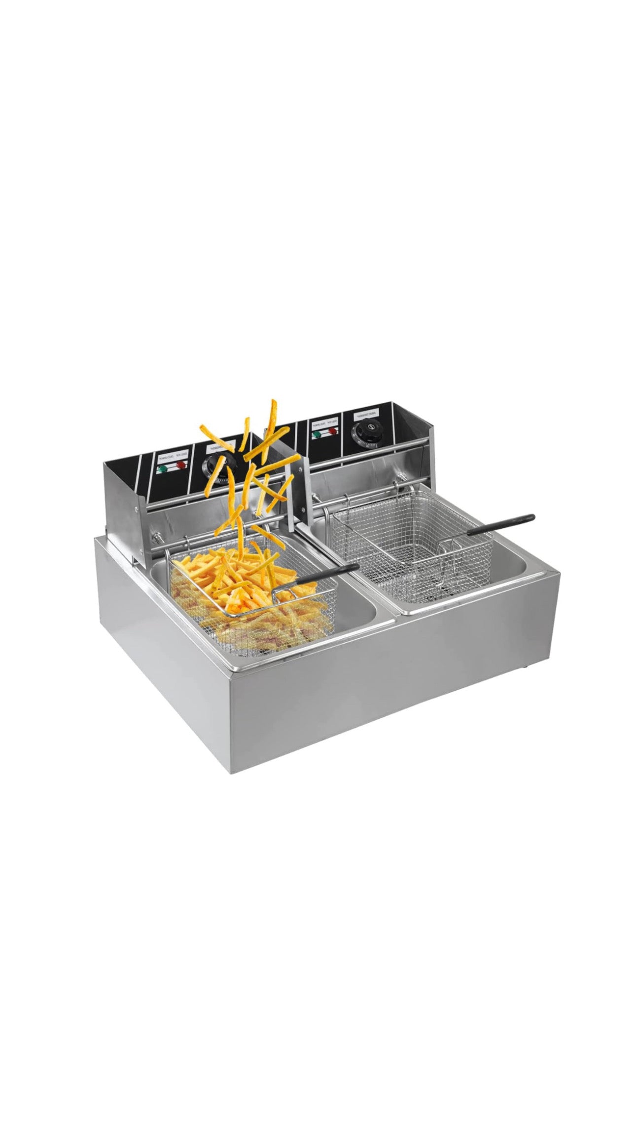 Esta freidora eléctrica comercial es ideal para restaurantes, negocios de comida rápida, food trucks y cocinas industriales, permitiendo freír grandes cantidades de alimentos de manera rápida y eficiente.