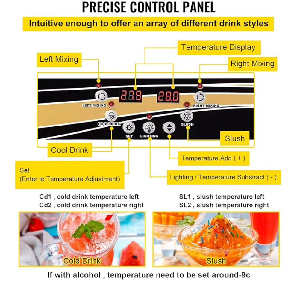 Perfecta para ICEE, frappés, granizados, bebidas congeladas y cócteles. ¡Haz que tu negocio destaque con esta máquina de gran capacidad y alto rendimiento! 🥶