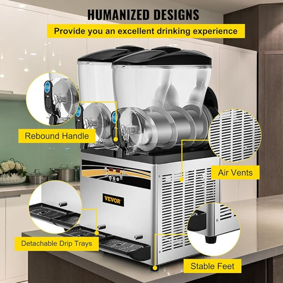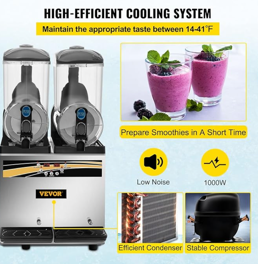 ✅ Capacidad total de 30 litros: Cuenta con dos tanques de 15L cada uno, permitiendo ofrecer dos sabores diferentes al mismo tiempo.